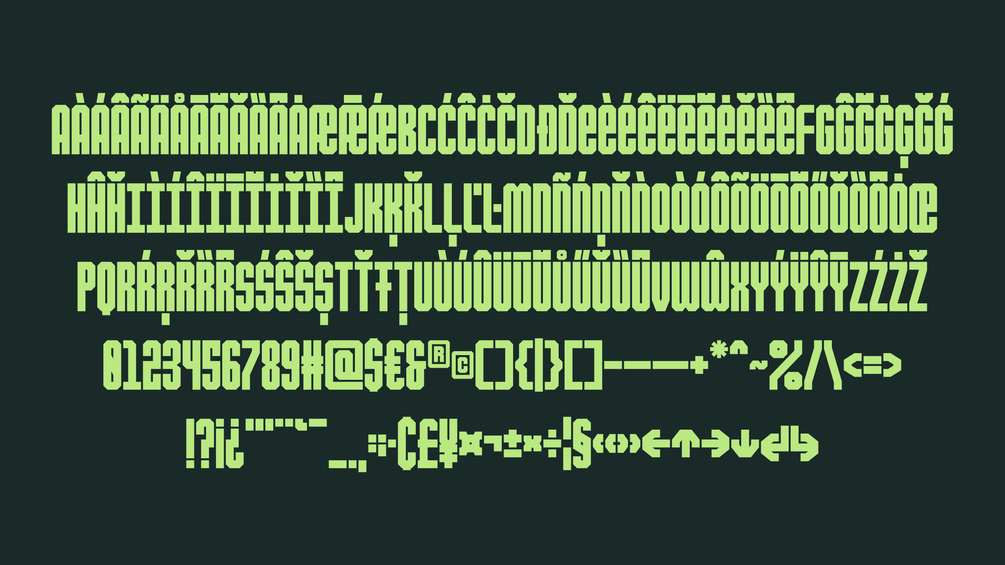 FREAKSNAKE is strong and condensed type of font. Its weight is great for headlines, various titles, posters and others. Designed with robust, harsh corners, it includes over 200 glyphs and multi-language support.